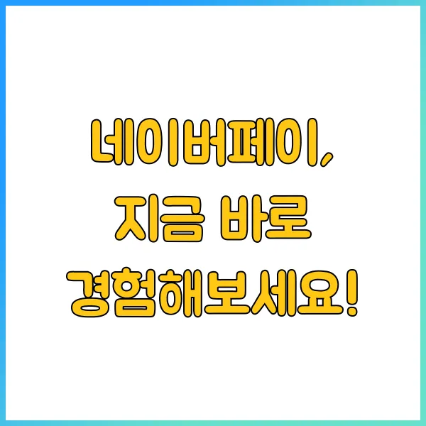 네이버페이의 놀라운 기능과 혜택, 아직 경험해보지 못하셨나요? 지금 바로 네이버페이를 시작하고, 더욱 스마트하고 편리한 금융 생활을 경험해보세요! 후회하지 않으실 겁니다. 네이버페이, 미래 금융 생활의 시작입니다!